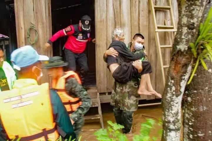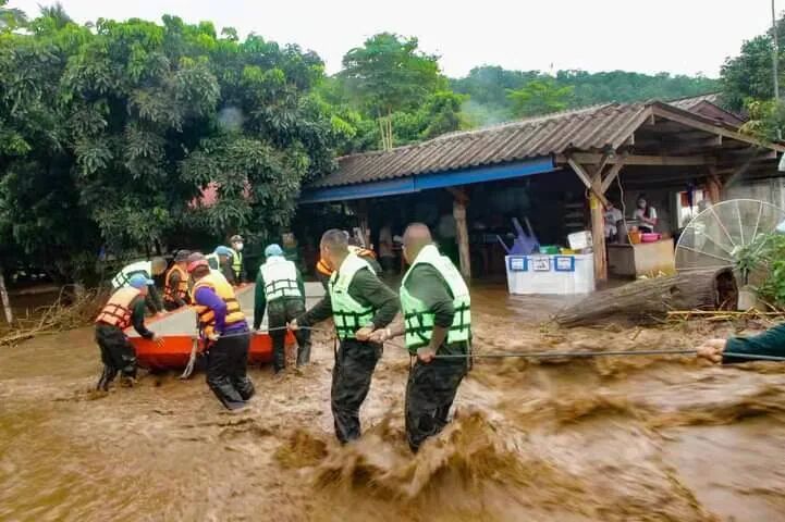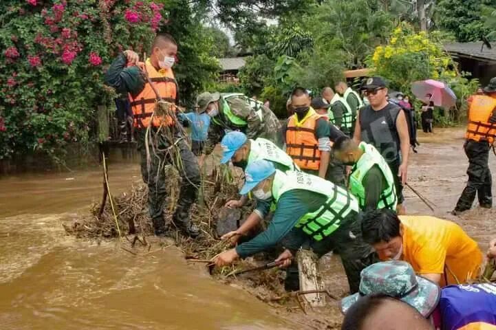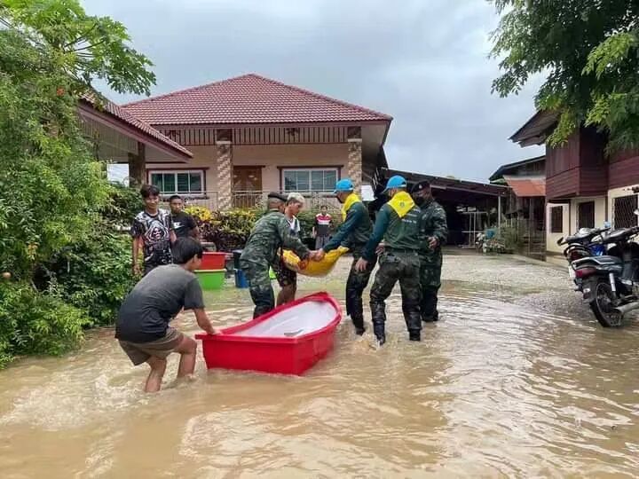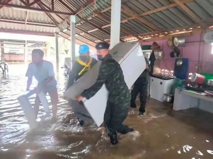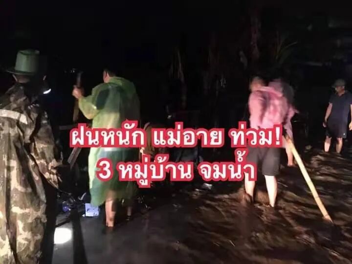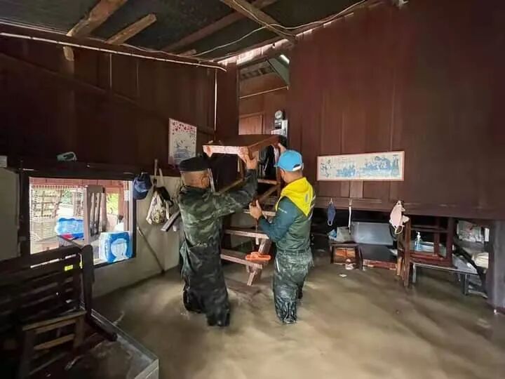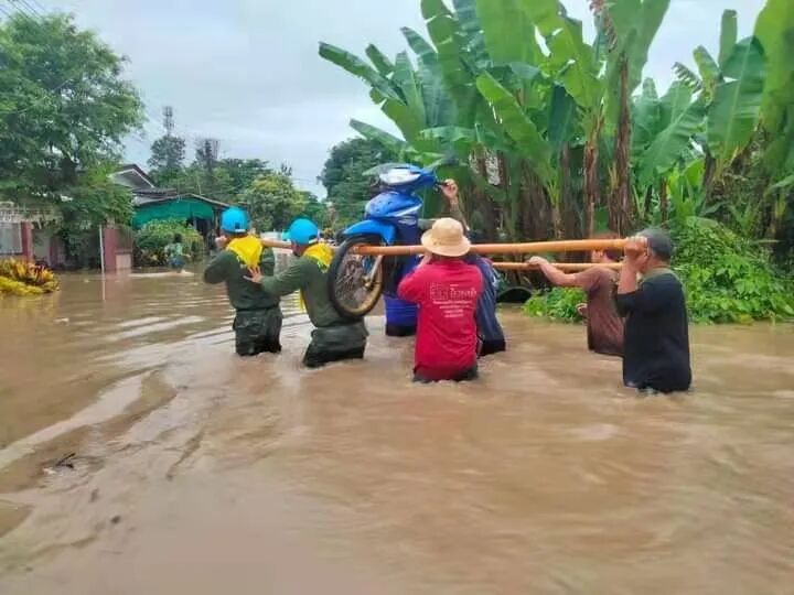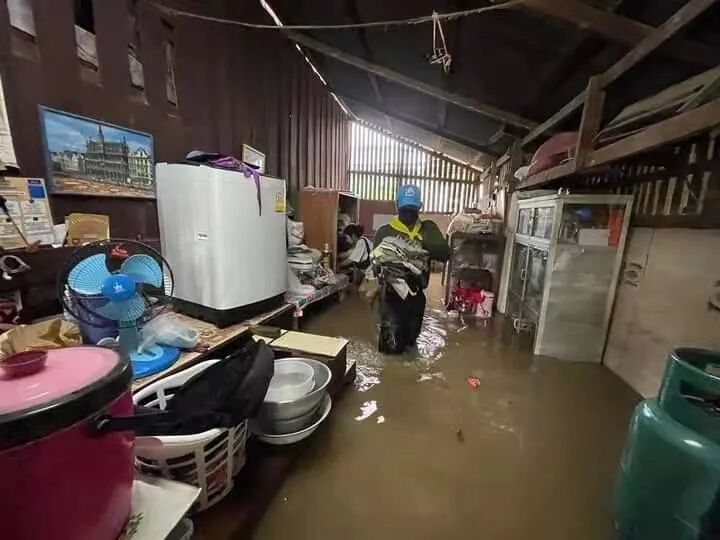 持续降雨导致大量雨水从森林高处流入村寨,部分地区水位已淹没房屋。不止清迈,其它地区的情况也不容乐观。
