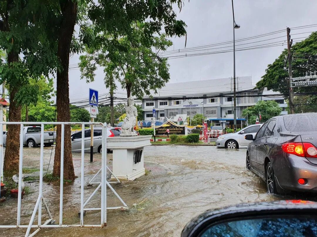 这不,据新闻报道清迈市区内多处积水泛滥,甚至出现深水坑,马路上水流成河,某些路段出现电线杆断裂,给出行带来很大的安全隐患。