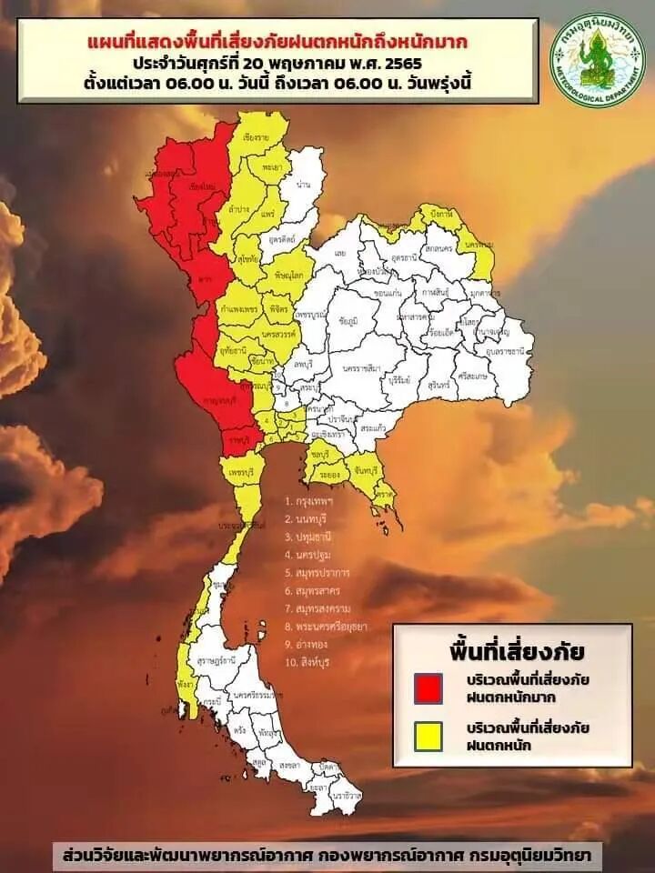 据北部气象中心报告,本月20-23号清迈府及北部其它地区有特大暴雨,可引发洪水。其原因是具有强烈低压系统的西南季风正在向北移动。