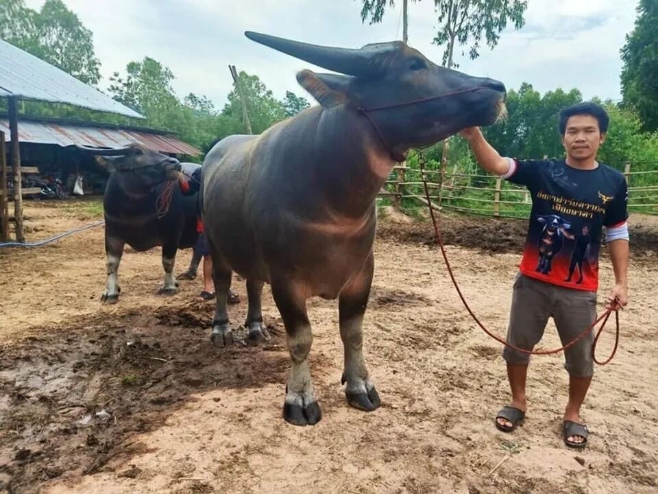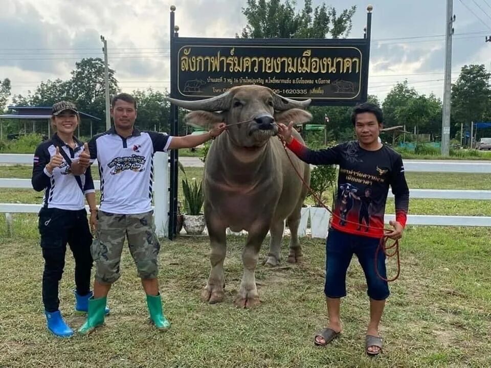 这头高颜值水牛名叫Jao Lam Khong,年龄不到三岁,来自泰国Bueng Kan府一家农场。