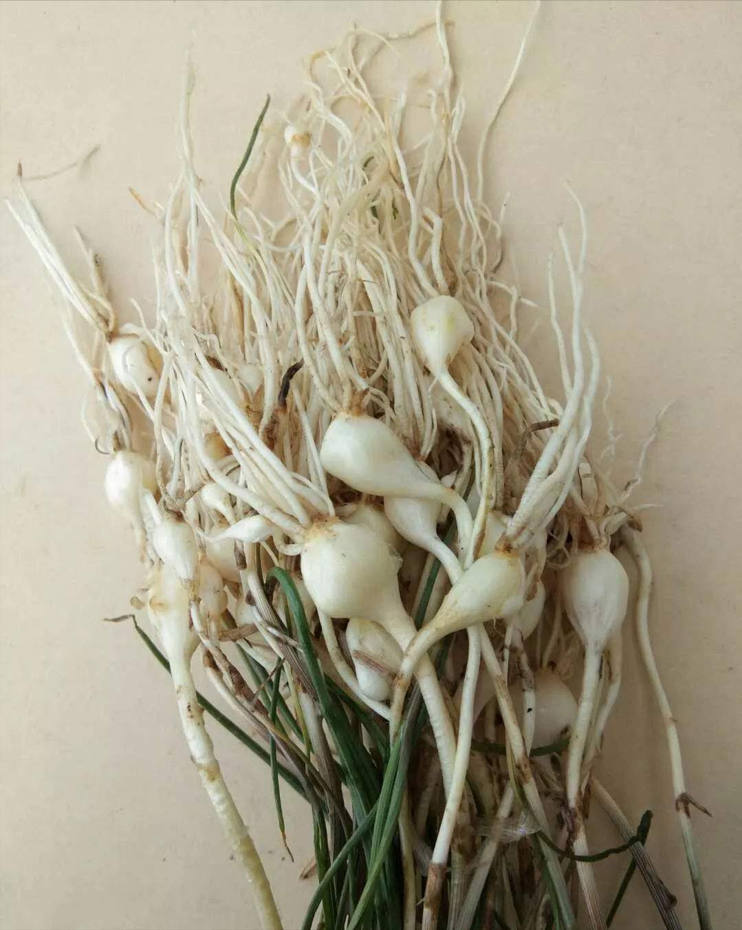 鳞茎果球挺大颗的,小一点的胡葱,回去也可以把它种在菜园里面,等它长大之后,我们再把它挖出来。这种胡葱炒鸡蛋吃可香了。