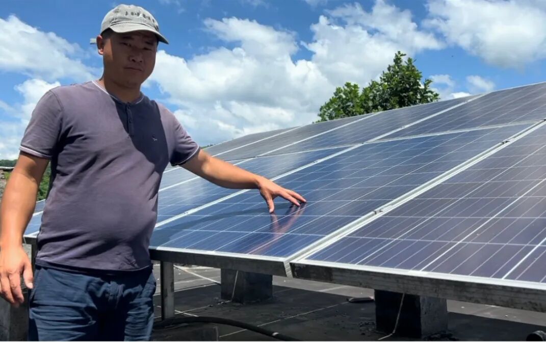 这光伏发电它的原理是特别简单的,就跟我们平时在这个马路上安装的这种太阳能灯是一样的,只是我们要把直流电通过逆变器把它变成这种交流电了,我们农村那每年6789 10这几个月是光照最充足的,也是发电量最高的几个月,每天平均只要有阳光,一天大概都是200多度电左右,平均一天的收入大概就有80多到90,每个月这个收入大概都有2000多块钱。