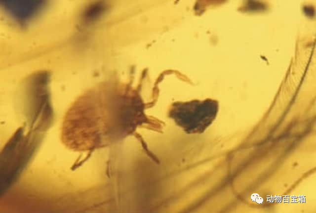 在琥珀中成为永恒存在的螨虫最后的晚餐似乎是恐龙的血。在化石上留下的记录中,同时发现寄主和寄生主的情况非常罕见。 从昆虫学家的琥珀收藏中发现的恐龙羽毛和螨虫