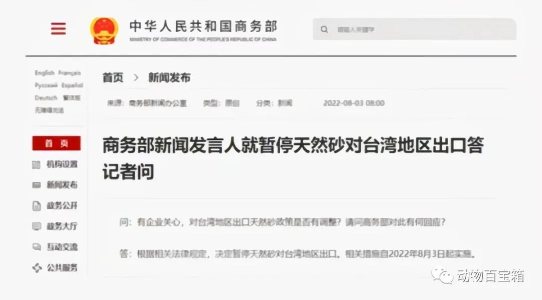 其实早在2005年时,中国就出于保护资源和环境的目的暂停了天然砂的出口事宜,但由于台湾地区缺乏优质天然砂资源,多次向大陆提出申请恢复天然砂的对台出口工作。本着两岸关系友好的原则和保障广大人民利益的出发点,我国才在2008年完全恢复了天然砂对台湾地区的出口工作,也实打实地帮助了台湾建材行业解决了天然砂资源短缺的问题。由此可见,这是完全出于两岸关系友好的原则才做出的决定。中国对于台湾的态度一向是友好的,台湾有困难,大陆来帮扶!但此次佩洛西窜访台湾,台独势力再次猖獗,我国终于忍无可忍,商务部也是宣布直接暂停天然砂出口工作。这一步反制措施也体现出了中国的智慧。