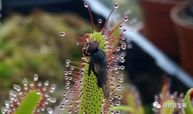 6.黏糊糊的触手攻击战苔的陷阱很优雅,在叶子部分渗出混有糖的分泌液,以此吸引猎物。但是分泌液是黏糊糊的,昆虫一接触就黏在一起。越想逃跑,就越会碰到其他的腺毛,变得更加动弹不得。而且腺毛像能抓住昆虫一样灵活。被包裹得动弹不得的昆虫,等待着被分泌的消化酶消化的命运。