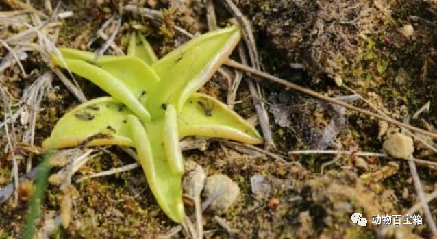 4.捕蝇纸虫堇虽然是食虫植物,但不像捕蝇草和毛线苔那样行动迅速。只是准备好陷阱,静静等待而已。把扁平的叶子分泌出的黏液误认为是水或蜜的虫子靠近的话,就会接触到黏液。于是叶子慢慢包起来,覆盖在昆虫身上。剩下的就是消化,从叶子上吸取养分。一旦捕获猎物,就要更换新叶,因此捕虫堇尽可能多地长出树叶,以提高捕虫能力。