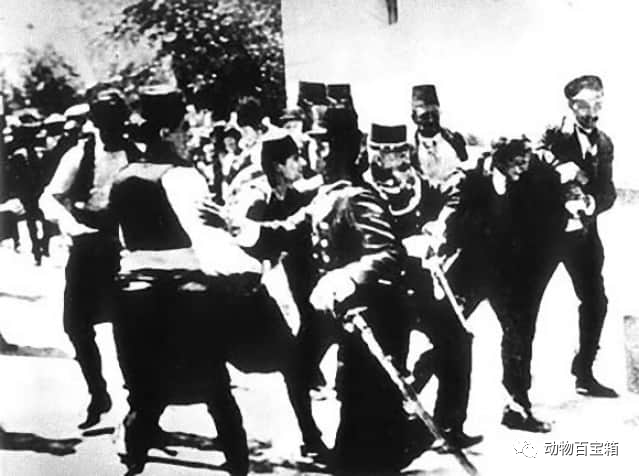 萨拉热窝的枪杀中,刺客使用的是勃朗宁M1910型半自动手枪,序列号为19074。 刺杀者当时只有19岁,他是塞尔维亚“黑手党”的成员,当时他在1.5米远的地方向这对夫妇的车开了7枪,事后他曾经试图自杀,但被路人抓住了,之后被警察带走。