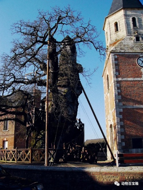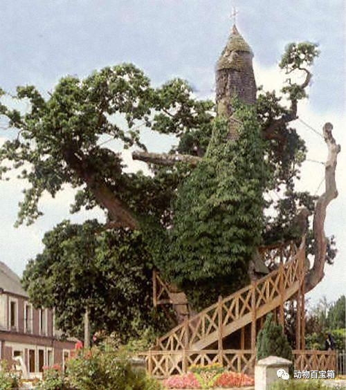 教堂树是法国最有名的树,它有500年的树龄,大到仿佛包围了整个教堂。