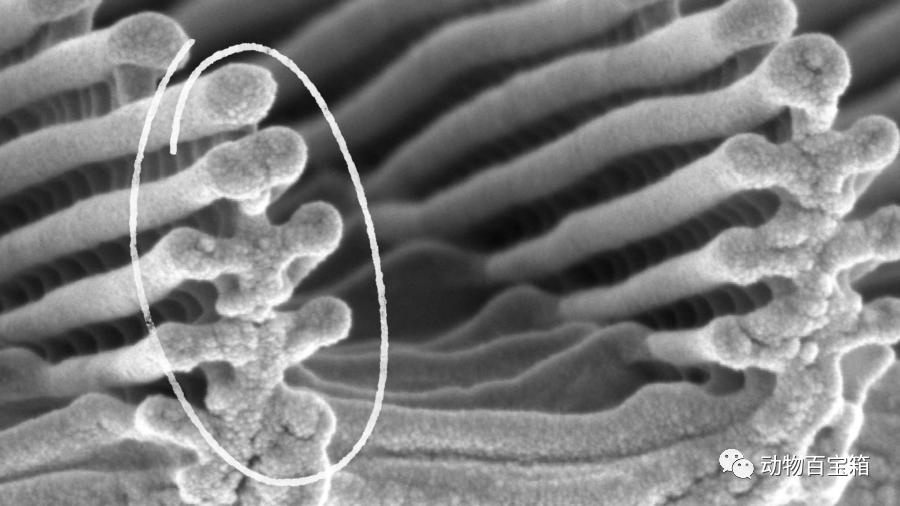 但是,蓝色并非如此,蓝色和其他颜色不一样。 “如果你拍摄蓝色蝴蝶时,移动相机,你会发现颜色会随着相机的移动而变化,这和全息投影很像,这是因为蝴蝶没有蓝色色素。” 也就是说,这只蝴蝶看起来是蓝色的,其实并不是蓝色的。 将蓝色鳞粉放大观察,你会看到小小的隆起线条。 把鳞粉横着切成薄片仔细观察的话,就会发现这个隆起是像小圣诞树一样的形状,树枝的排列让灰蝶的翅膀看起来是蓝色的。 光进来之后,表面会反射出一些光,有些光会渗透到各个层,在底部反射,从上表面和底部反射的光的颜色大多会偏离相位,被抵消掉。但是,蓝光就不同了,上面和底面反射的光是同步的,到达我们的眼睛就能看到颜色。