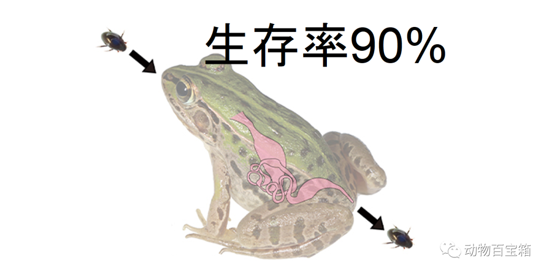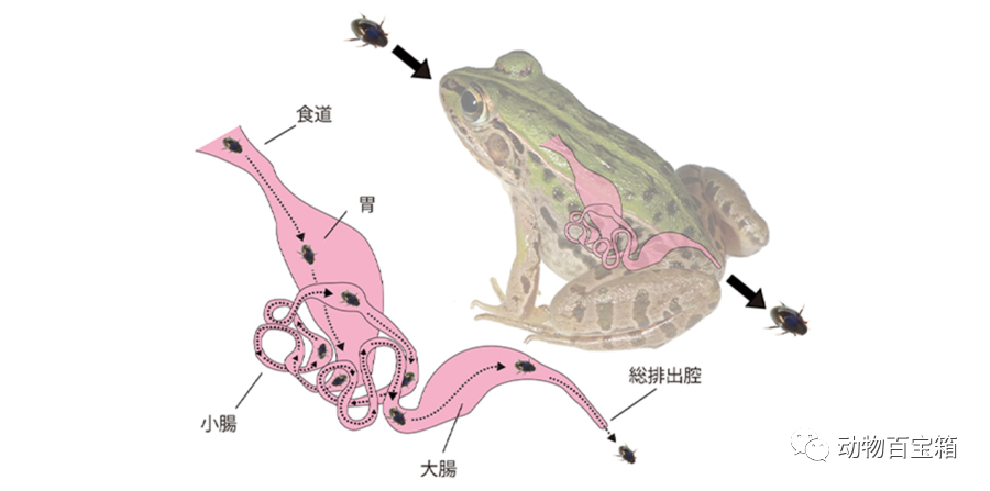 为了证明他的假设,科学家们尝试了最简单的方法。他们准备了 40 只甲虫,并将它们喂给 5 种不同的青蛙。等待甲虫从青蛙的肛门里出来。结果发现,被喂食的甲虫有 90% 幸免于难,从青蛙的肛门逃脱。平均逃生时间为 1.6 小时,最短的情况是捕食后仅 6 分钟。另一方面,当用甲虫(花瓣科)以外的物种进行测试时,它们都会死亡并在平均 50 小时后被驱逐。从这个巨大的时差来看,成功逃脱的甲虫被认为是自行穿过青蛙的消化道并被排出肛门的。我没有窒息,因为它是一种水生昆虫通过这项研究,第一次发现有生命在被吃掉后会主动逃跑。