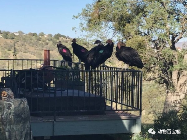 锡耶娜在她写道:“虽然能像这样和朋友们一起看到濒危鸟类的样子是一件很美好的事情,但是家里的花盆被破坏了,纱窗和木质甲板的油漆也被破坏了,这让我的母亲很无奈。真是一筹莫展。” 免于灭绝的加利福尼亚神鹫 在锡耶纳的推特上,从事加利福尼亚神鹫繁殖和保护工作的美国鱼类和野生生物局做出了如下回复。 辛达先生的家,好像正好建在神鹫的历史栖息地上。秃鹰会来死田的家也是因为这个原因。 如果再次发生这样的情况,为了防止损坏,请用水管喷水或使用自动喷水系统。 另外,请用不直接伤害神鹰的方法驱赶神鹰,如鼓掌、喊叫、放置稻草人等。 建议不要接触野生秃鹰。接受了这个建议的辛达先生,马上用软管给停在屋顶上的神鹫洒水,鸟飞走了,到附近的树木避难。 从那以后,他们停止了对辛达家的压制,只是在民宅上空盘旋的情况变多了。 20世纪80年代,这种鸟的数量曾减少到数十只,但由于野生生物保护运动家们引进了献身性繁殖计划,让加利福尼亚神鹫从濒临灭绝的危机中获救。 现在,美国野生的加利福尼亚神鹫只有300只。加上饲养的也只有500只,还是是非常稀少的。 其中有十五只聚集在一起,这几乎是奇迹,但作为寄居在这里的居民,难免会感到困惑。