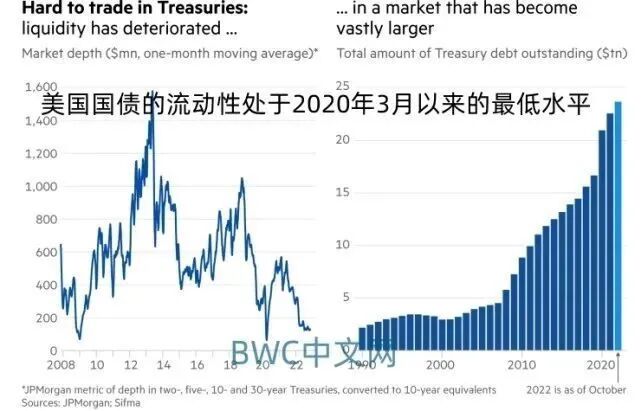 因为美联储并非美国经济的美联储,而是美国多家银行组成的联合机构,而逐利才是他们的终极目标。这也是美国国债骤然失去流动性的深层原因之一。如下图,美国国债的流动性在上月就已处于2020 年 3 月以来的最低水平,而当时是因为大流行美国国债才陷入困境的,显然,目前的市场环境更加糟糕。