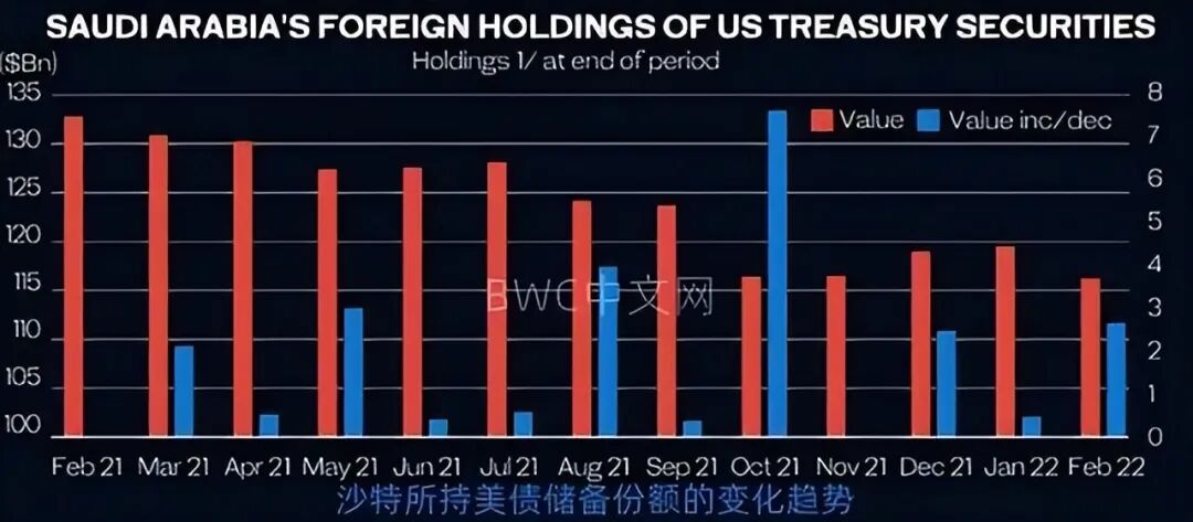 而美国经济为了维系“石油美元美债”的地位,曾发出一个NOPEC法案,意在叫停沙特主导的OPEC对全球石油的话语权。对此,沙特经济直接回击,一度宣称或将要终止石油美元协议,如果通过“NOPEC”,那么,其将以美元以外的货币出售石油,美元是核心选项。把这些现象叠加起来,就不难理解,为什么沙特已经累计抛售了比例高达38%的美国国债了。