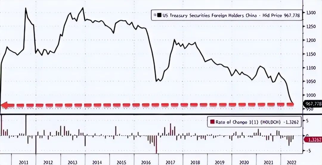 不过,中国的美债持仓还是保持在万亿美元规模以下,为9700亿美元,为2010年以来最低水平的位置。而根据历史数据可以看到,中国在2013年11月当时持有美国国债总额达1.3167万亿美元,近9年间,已累计抛售规模达3467亿美元的美债,累计抛售比例超26%。