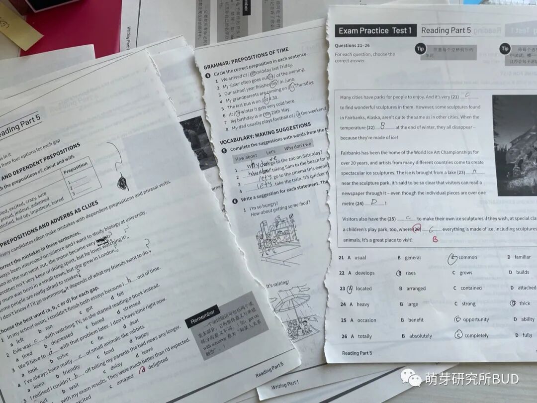 举个例子,过半个月Joshua就要考KET,这段时间陆续给他做了两套真题,我就发现孩子在考试里没有思维定势,在孩子的答题状态里,他不会受出题人的“小陷阱”影响,他压根就不在意这些“迷惑点”。▼
