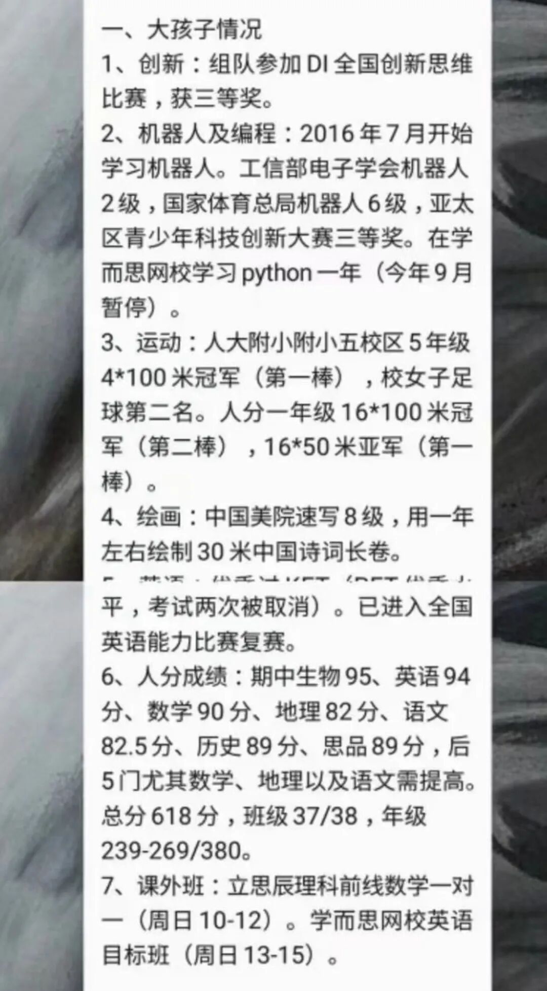 前段时间有一个海淀区家长招聘家教的帖子,很多网友都在喊“震惊一整年”。可不,里面孩子的兴趣班以及成绩,就亮瞎了大家伙的眼睛:▼