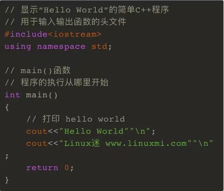 而c++的代码和语法相对来说就会较复杂些,同样输出一个“hello world”,Python和C++的代码数的对比还是比较明显的。