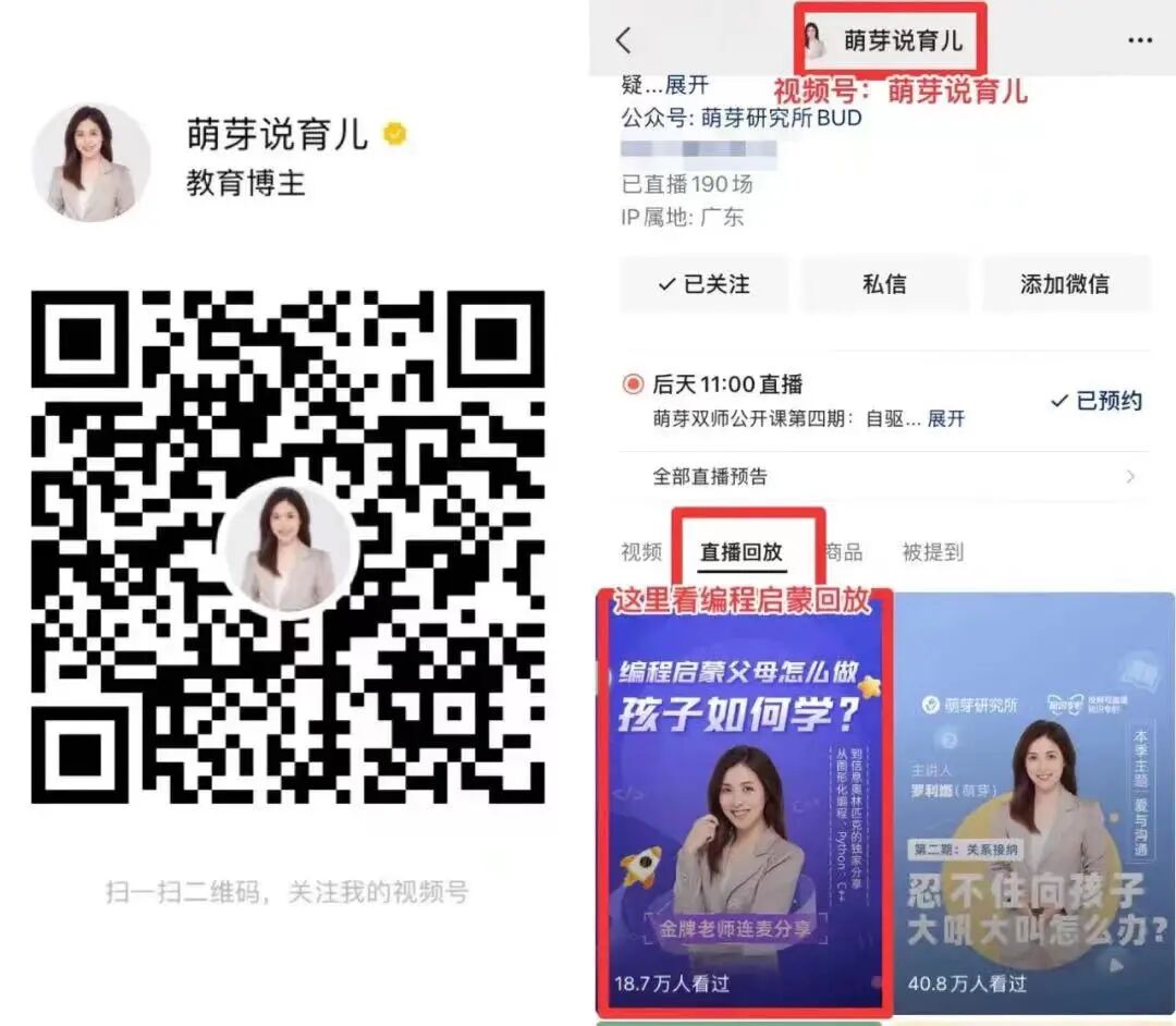 所以也有很多姐妹来到我的连麦直播间,了解孩子怎么学好编程的问题。(没来得及看的可以扫码进入我的视频号回看▼)