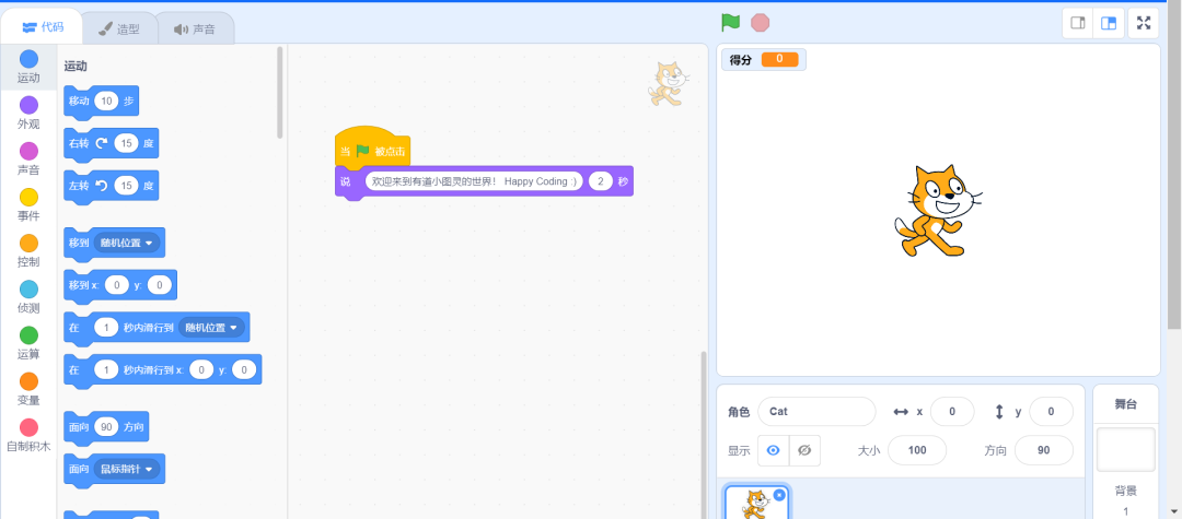 作为一款最基础的图形化编程语言,它几乎是每个孩子入门编程的第一步。Scratch的好处,就是孩子只需要用鼠标拖拽积木,就可以完成一个又一个的编程指令。