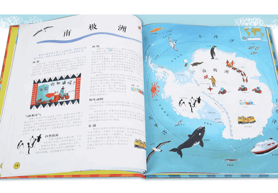 弟弟则是对地理和历史特别感兴趣,所以我给他选的就是介绍地理、人文知识的书,比如这本《DK地理百科全书》,他也会兴奋地拉着我讲各个国家的人口。
