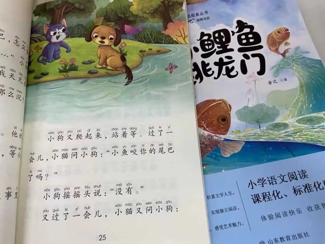 也可以选一些更接地气的故事绘本,比如语文教材里推荐的《小鲤鱼跳龙门》、《一只想飞的猫》等等。