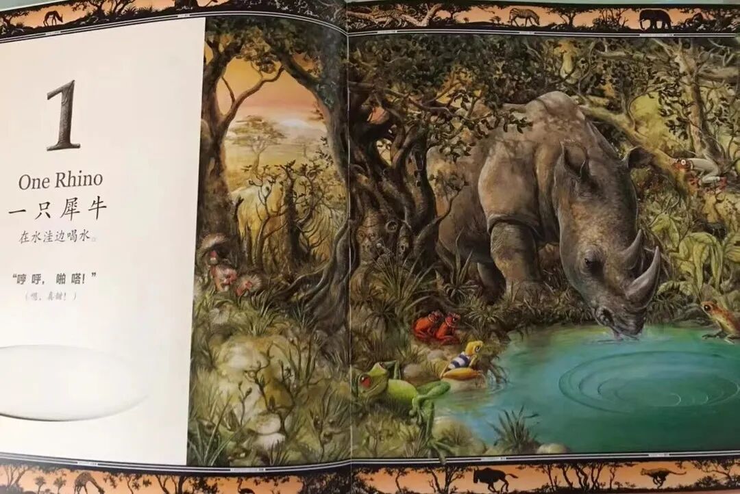 就拿我家哥哥看动物类的书来举例,在他上幼儿园的时候,我给他看的就是只有字少图多的《来喝水吧》,让他先对各种动物有基本的认识。