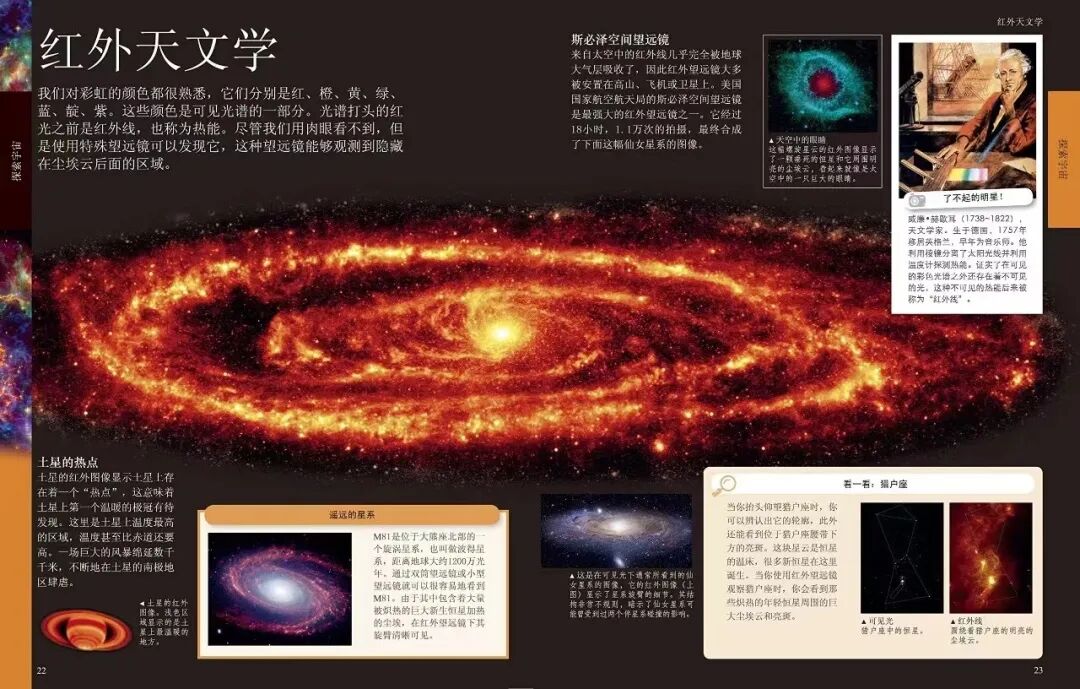 比如我家哥哥喜欢科学和编程,所以我给他选择的是介绍天文、计算机、科技等等的书,比如这本《DK太空百科全书》,光是一张星系图,就能让他沉浸其中,爱不释手;