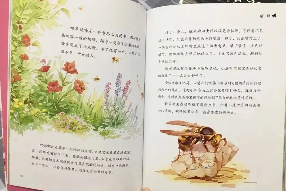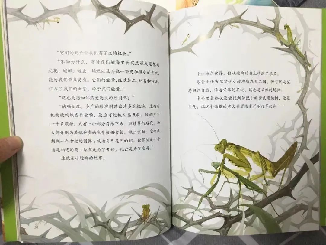 再大一点,我选的就是图文对半开的桥梁书《写给中国儿童的昆虫记》,让他慢慢地适应中篇文本的阅读,认识的内容也从动物外表上的基本特征,变成了更为深入的生活习性。