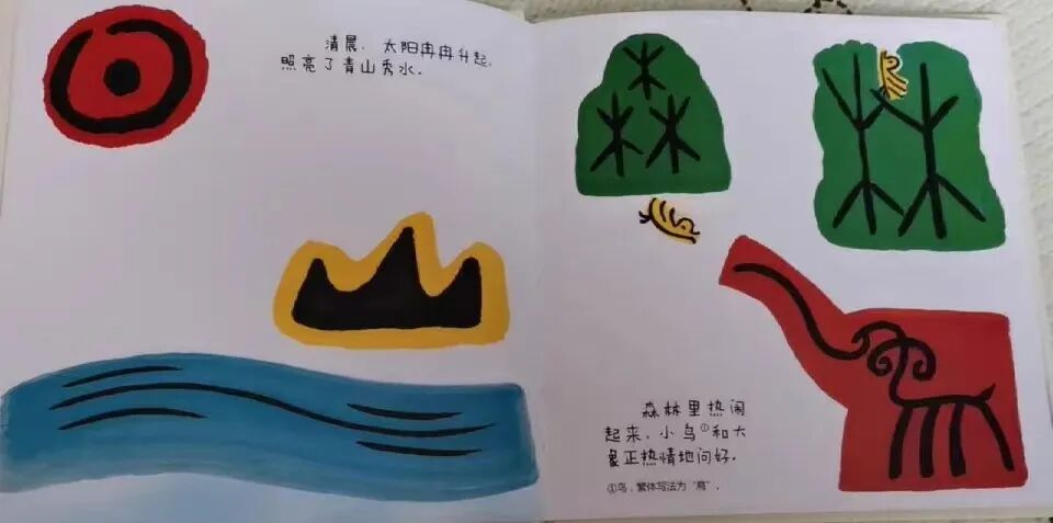 在文学基础上,可以选一些识字的绘本,比如《三十六个字》里,把每个基础的汉字从甲骨文开始溯源,这又比幼儿园的单纯识字要更有趣深刻,也更适合一二年级孩子的阅读水平。