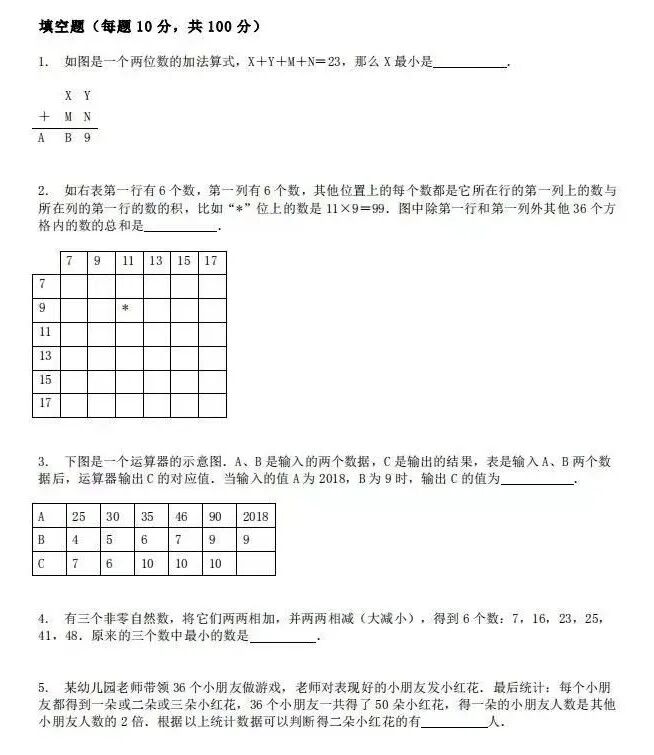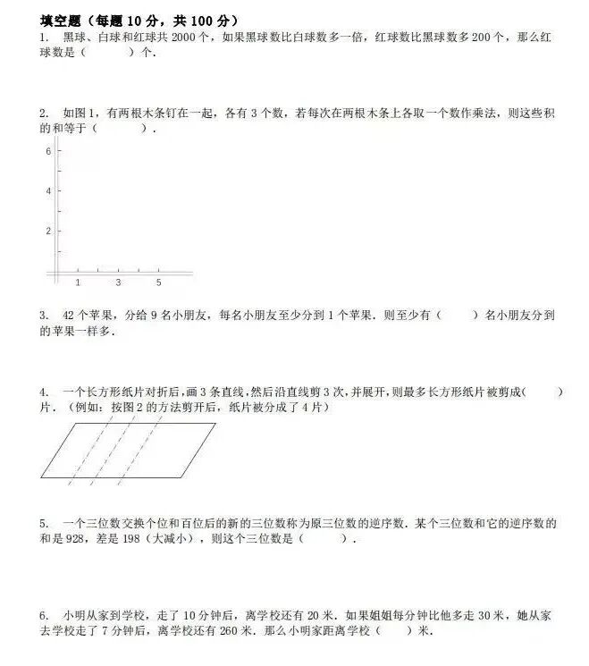 我给你们看xx杯的历年真题,这是三、四年级的题目: