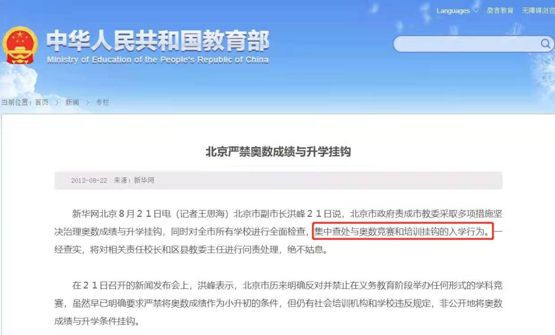 潜台词是:小学、初中生就别考虑数学赛,不允许跟升学挂钩。