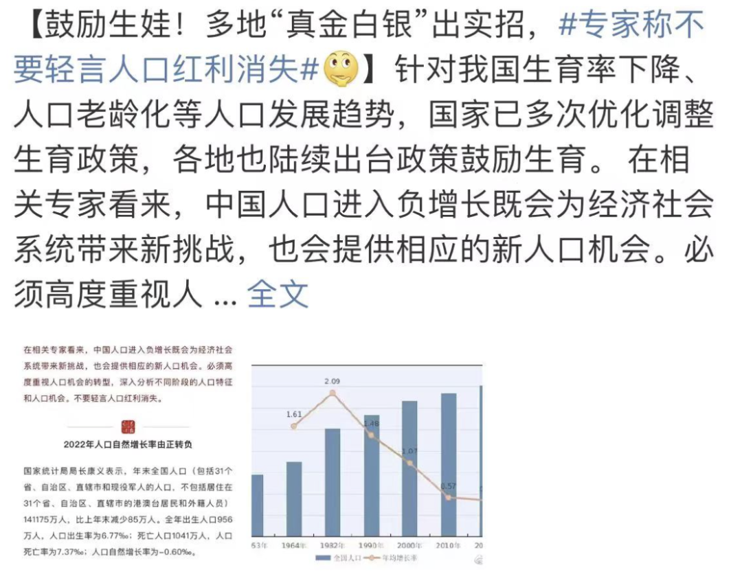 我随意看了一下微博广场,发现全被“人口生育率”刷屏。我第一反应是佩服,敢情春节假期,又是人口受孕高峰期了吗😂。