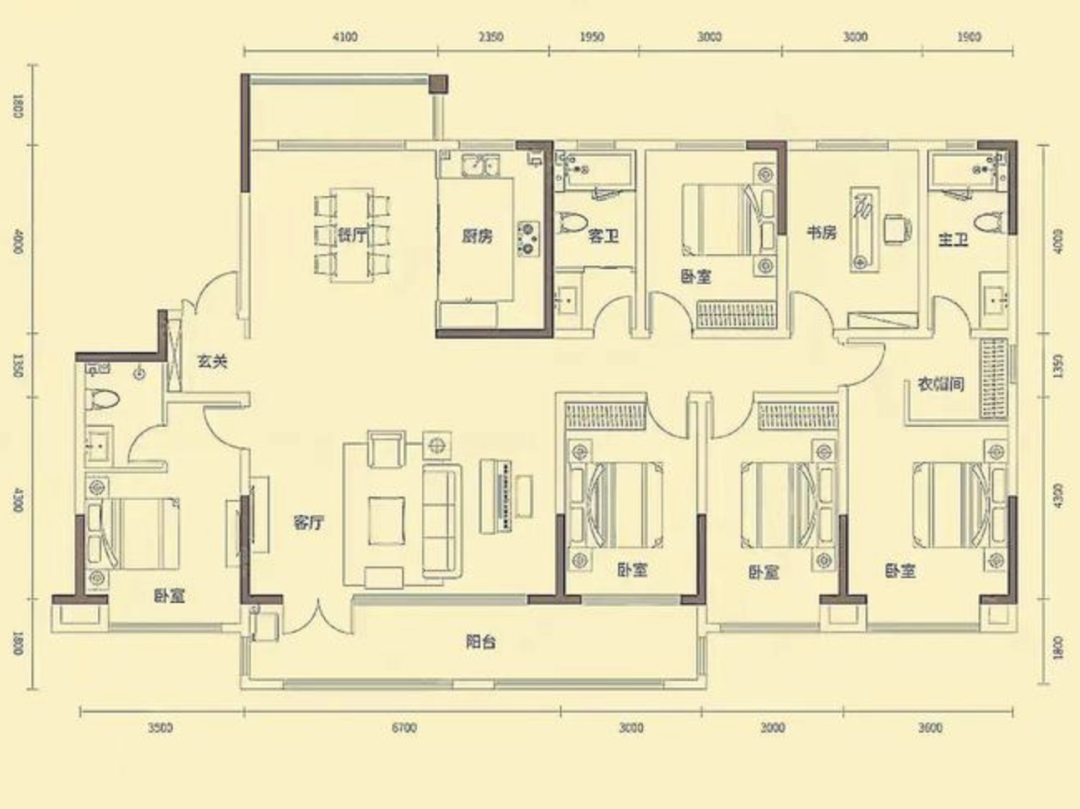 你看多贴心,220平方米的房间,改出了五个卧室,两个客厅,一个厨房,两个卫生间,简直太其乐融融了。