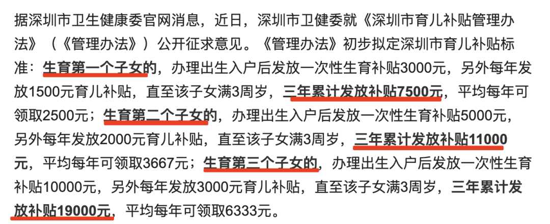 简单来说,如果一家人生了三胎,大概三年下来可以拿到最高1.9万元的补贴。