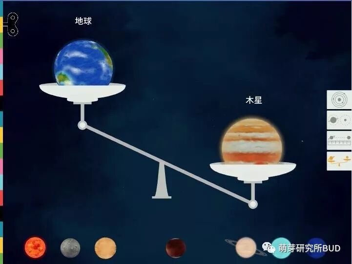 如果试着把星球分别拖动放到天平的两边,还可以比较质量:▼