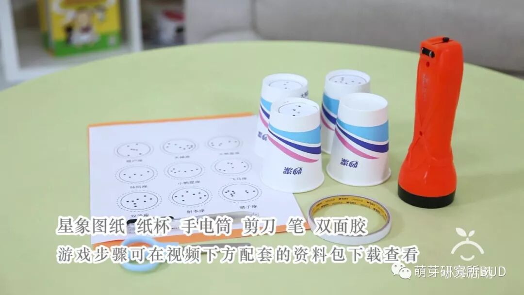 这个手工制作的过程也非常简单,把星座图打印在一张A4纸上,一个个剪下来之后沿着点的纹路戳出洞洞,贴在一次性纸杯的杯底就行了。Joshua拿着手电筒在纸上面照来照去,兴奋得不行呢。▼