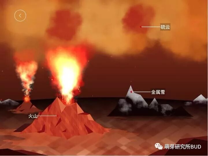 比如金星表面会出现的物质有哪些,分别点硫云、火山和金属雪会发生什么现象:▼
