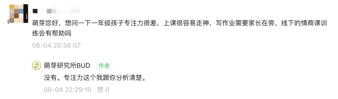 在SEL体系里,孩子的专注力培养不仅去不到要花钱“送治疗”的程度,加上现在很多线下情商培训班都没有办法系统解决孩子性格培养中最关键的家庭氛围改善,所以我们看似把孩子一个一个送去培训班,但实际上孩子行为改变的几率是非常低的,因为情商培训班缺失了孩子性格培养中最需要的两个环境因素: