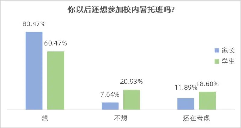 这也是为什么,8月初广州南都民调中心对这个暑假托管服务做的民调,800多名学生和家长的反馈里,想参加校内暑托班的还是占大部分。▼