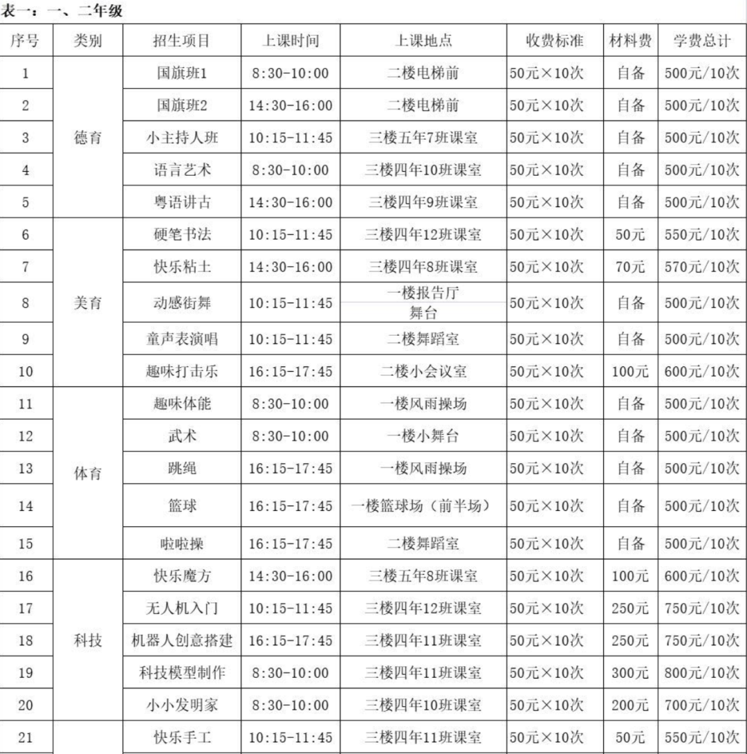 像下面这张图就是广州其中一个片区的暑假托管明细,理论上只要时间卡好,基本上把孩子放在学校里全日托管,是完全没问题的。▼