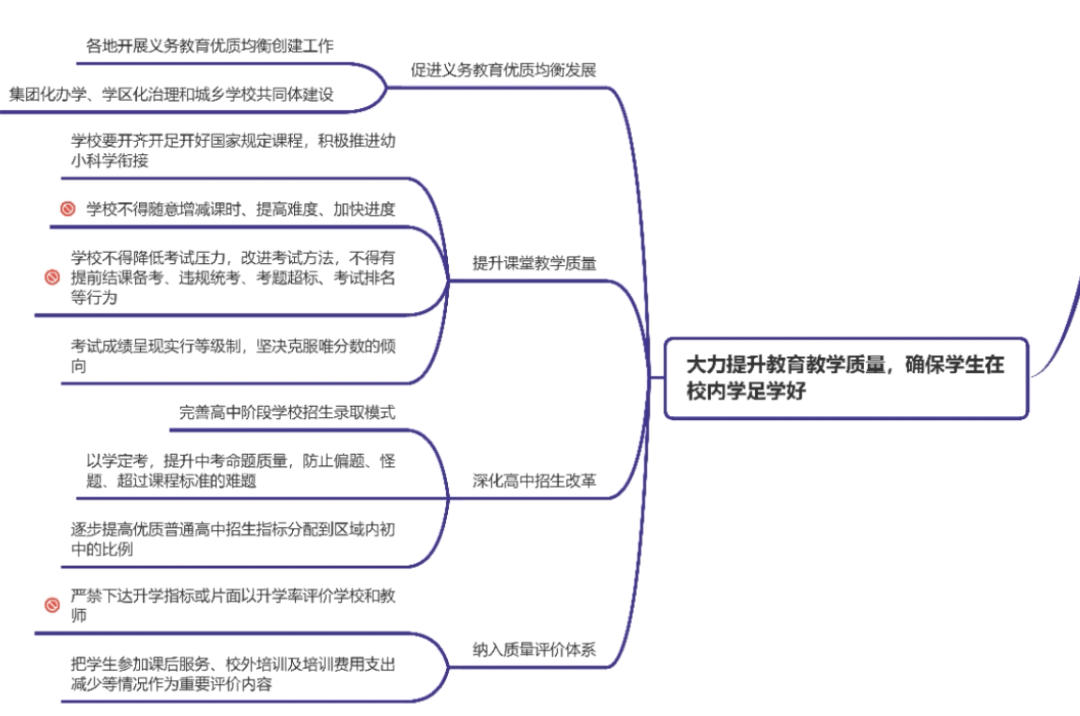 在新华网当天发布的文章里,的确能看到一些大的倡议和鲜明的反对,比如提到减轻学校负担的根本之策是全面提高学校教学质量,做到应教尽教,强化学校教育的主阵地作用,以及鼓励支持学校开展各种课后育人活动,以及加强教师队伍建设等方向。