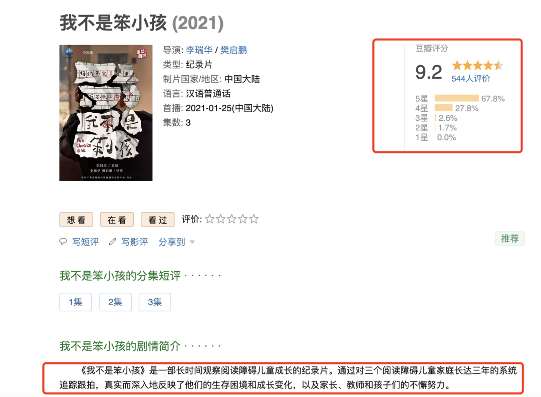 豆瓣评分9.2,虽然打分人数不多,但对于很多第一次接触这个概念的朋友而言,是很直观能感受到这群儿童和家庭会经历的生活和状况。