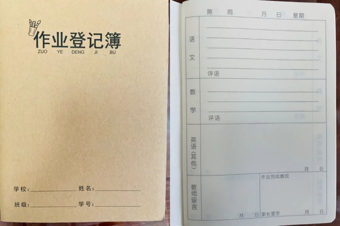 我家弟弟今年还处在一个特别的时刻,就是“双减”政策。“双减”之下,一二年级作业在孩子学校是真没有。老师给到孩子的作业,基本上都是一些预习,或者是一些非常基础的习惯养成,比如说阅读30分钟,跳绳10分钟等等这些,所以也没有作业本让孩子去抄作业,父母检查作业,反而是留着空作业记录本,然后让家长每天要签字,然后第二天带去学校给老师看。▼