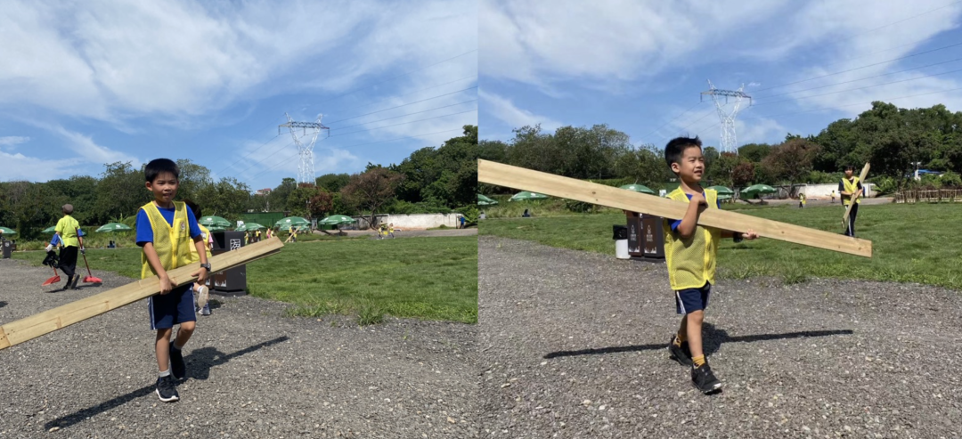 👉 10:30-12:00:参加素质拓展活动,哥哥当“伐木工”,弟弟学习如何做鸟屋。▼