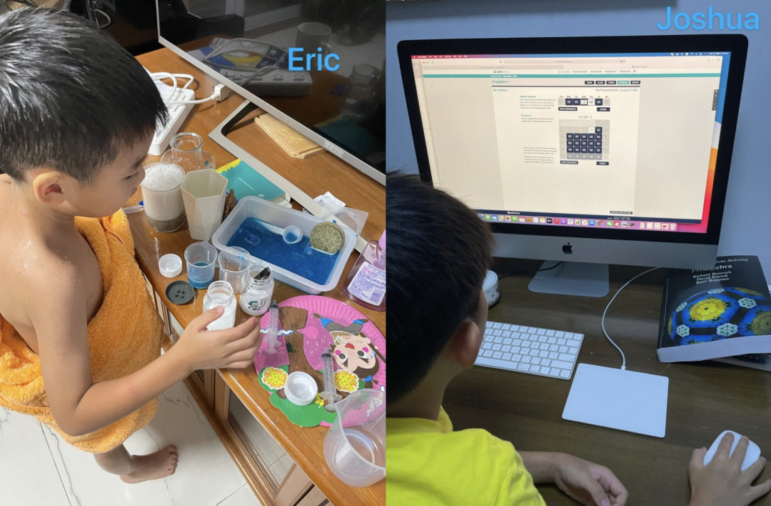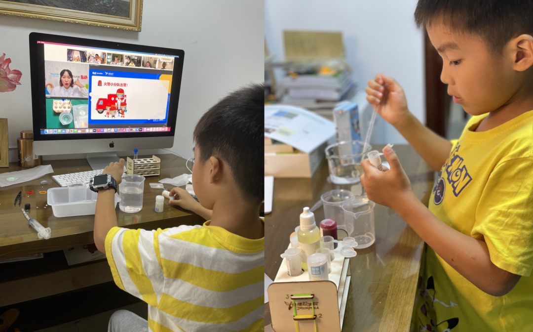 上上周就是弟弟继续做实验,哥哥自学数学课。▼