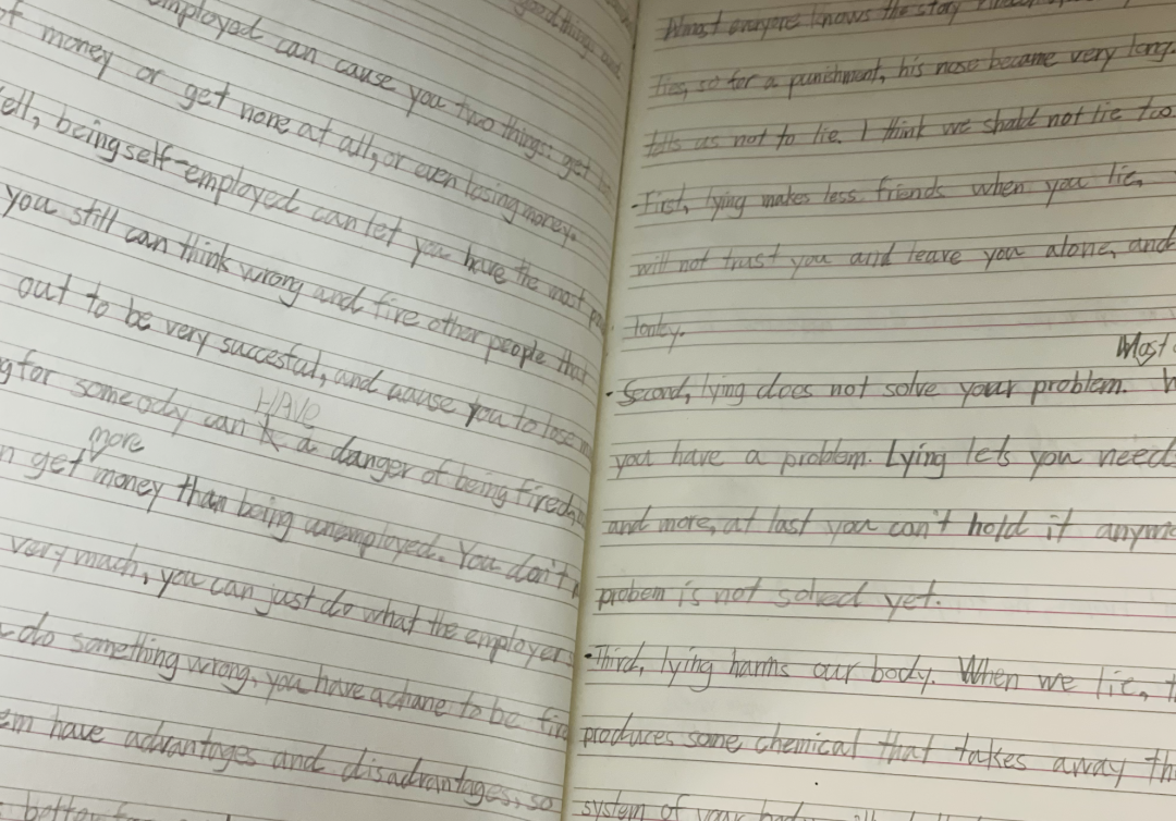 哥哥还有额外的“功课”,就是学演讲,写英语作文。演讲主要是锻炼他的思辨能力,英语作文就是巩固输出习惯,有时候是随笔,有时候是主题作文,有时候是备考作文,一点点积累。▼