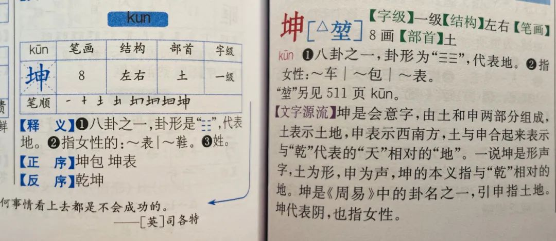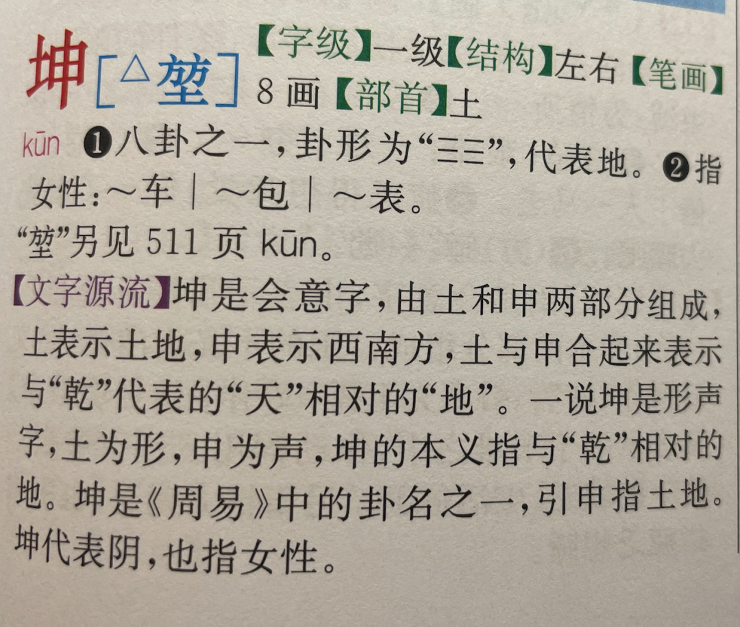 而当我们去看弟弟的名字“坤”的时候,它的解释是这样子的。▼