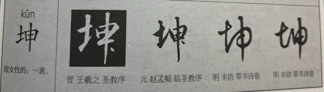 比如Eric的坤字,已经可以看到晋朝王羲之、元朝赵孟頫、明代丰坊草书等9种不同的明师书例。▼