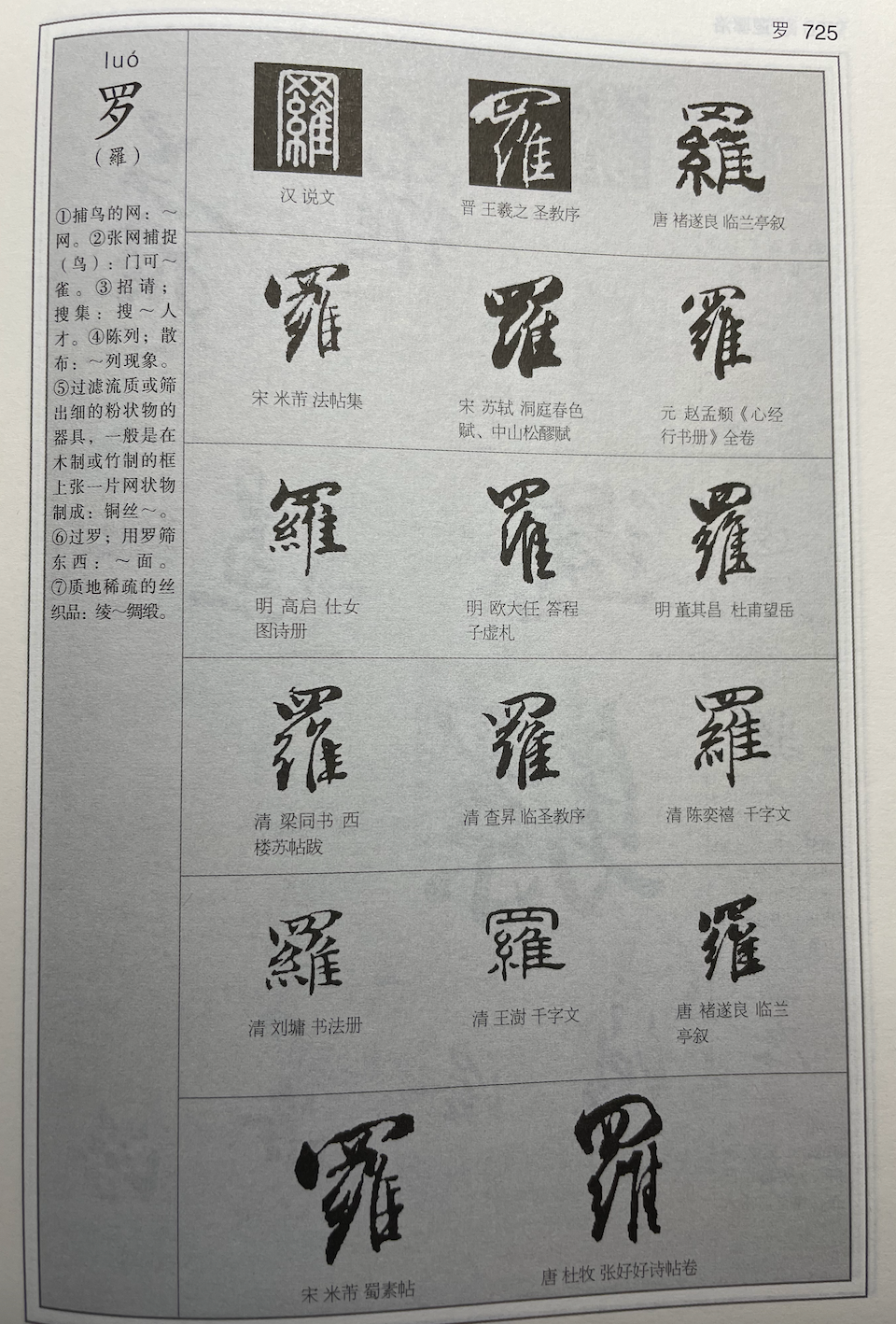还有“罗”字的书法书例,被《书法大字典》收录了整整有17种,他们都会仔细对比书法里的不同差别,然后告诉我,他们最喜欢哪个风格的字体。▼