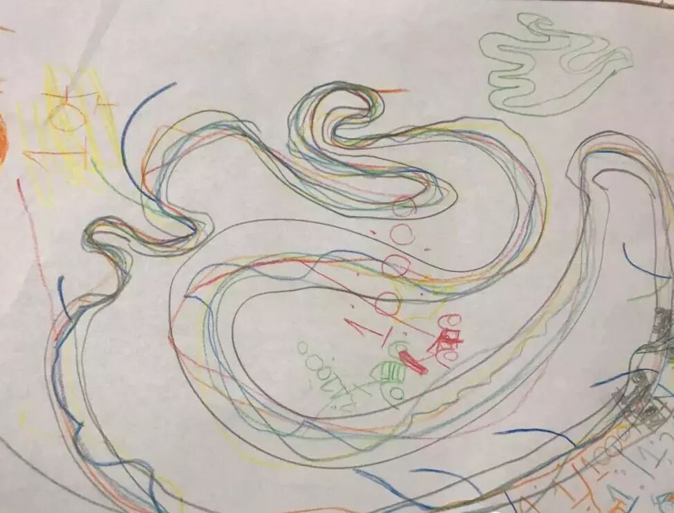 三岁前的画作其实都属于随机涂鸦作品。孩子就是感受涂鸦的那种快乐,所以让孩子多体验不同的感官材料和艺术活动很有帮助的。坦白说,我家孩子这块做的不大好,我们感官材料的引入当年一直有些困难,后来揣测是养育中老人家一直在孩子面前说“这个材料好脏,这些饭粒好脏,这些东西不要碰”,所以让孩子们本能对这些材料有包袱,除了接受拿着蜡笔涂鸦的情况,但如果换成粘土、沙子、去沙滩玩沙等,孩子们就不乐意。